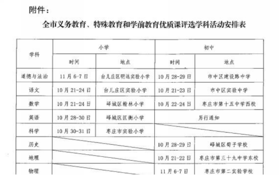 道法学科枣庄优质课安排在11月6-7号,地点在台儿庄区明远实验小学,大家可视自身情况积极参与。