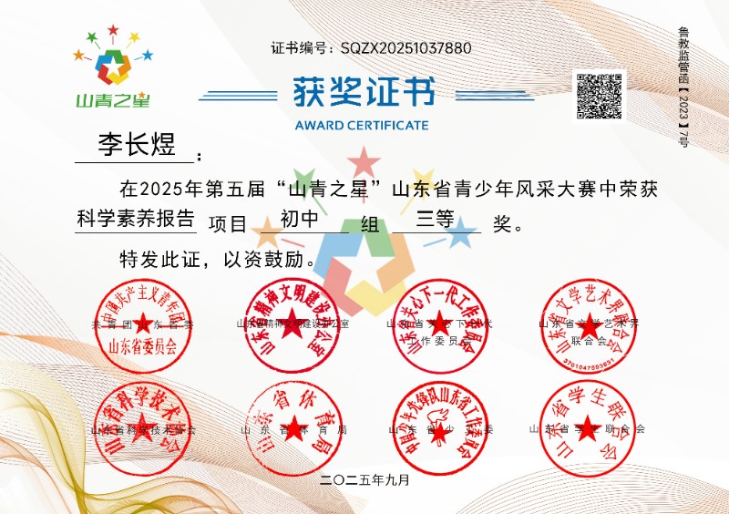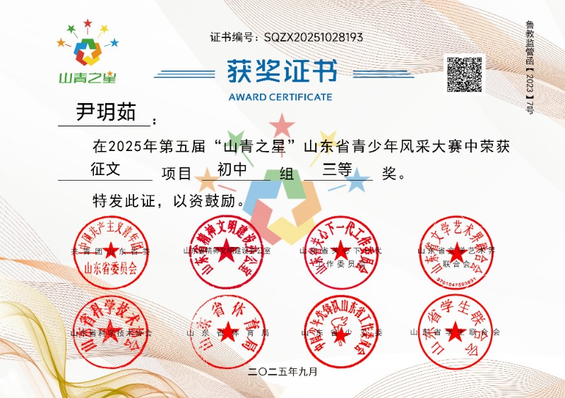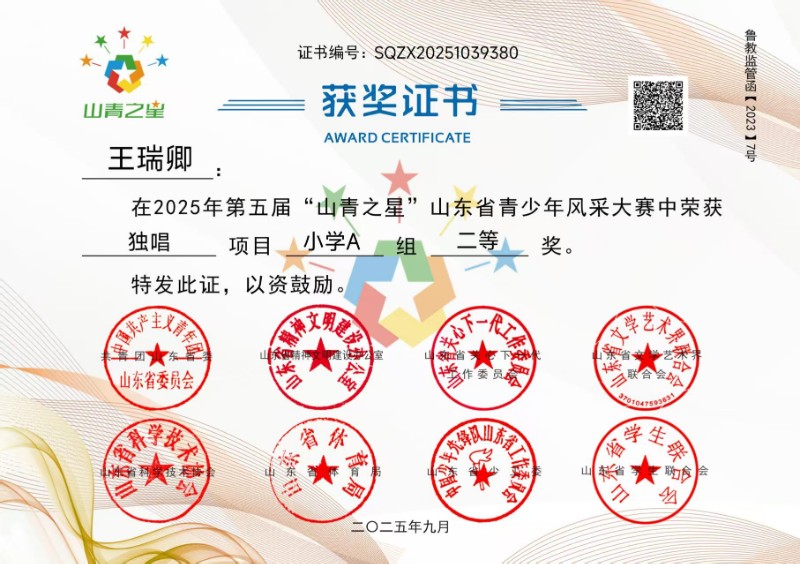 2025年第五届“山青之星”山东省青少年风采大赛获奖
